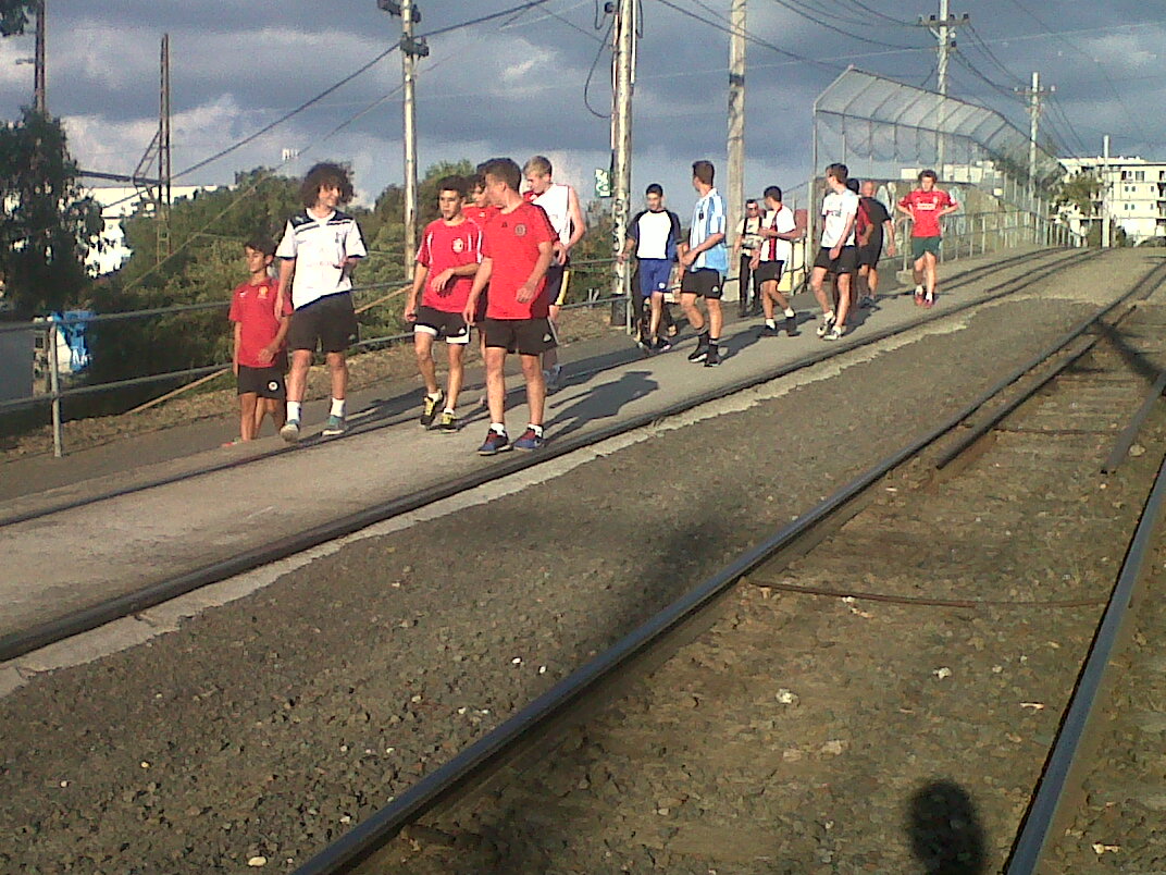 The Alex Cobo Soccer Academy uses Advanced Athletes Performance for their fitness needs. This year his main squad is Under 15 and they have mostly been with us for 12 months. I decided to take them to some pretty good hills alnongside the Tram Lines over a bridge in Preston. Approximately 130m in length but not so steep that they cant sprint.