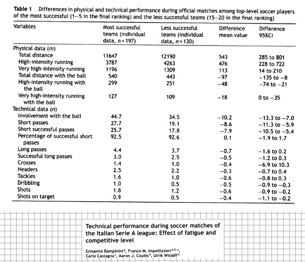 So it is obvious that in that 1.7% of the game players must be highly efficient but with 98.3% of the game involving running, one can see why Nations like Germany and clubs like Galatasaray have used Athletes Performance to underpin their fitness programs. IE Think of that. A US company running fitness in the heartland of football!